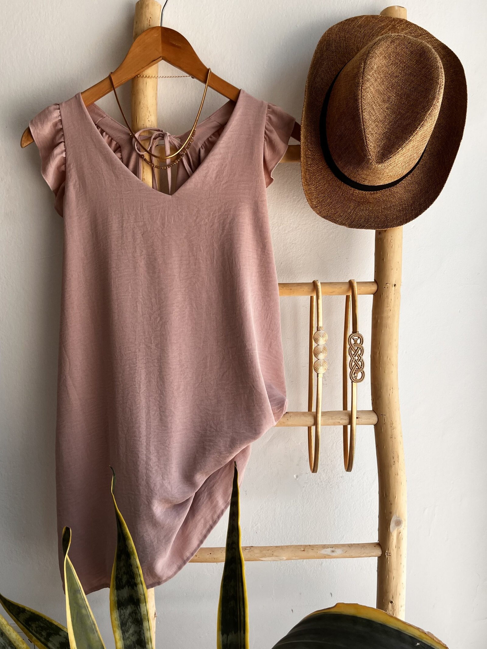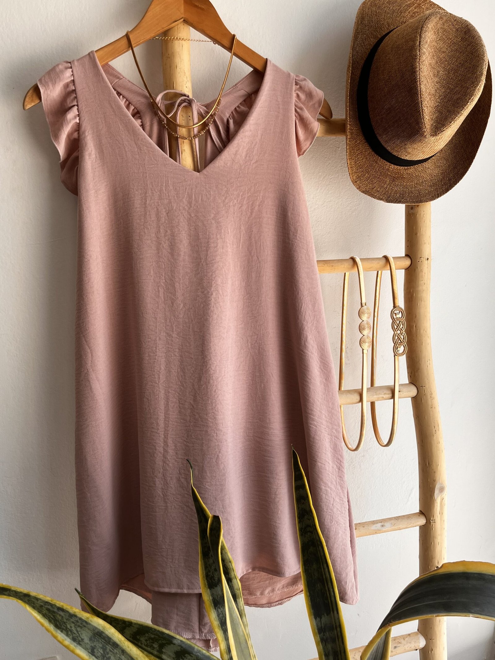 Un vestido fresco, liviano y super femenino, ideal para los días cálidos. Esta confeccionado en una tela suave y ligera que cae con un movimiento natural. Presenta un escote en V muy favorecedor y mangas con voladitos que suman delicadeza sin perder comodidad.